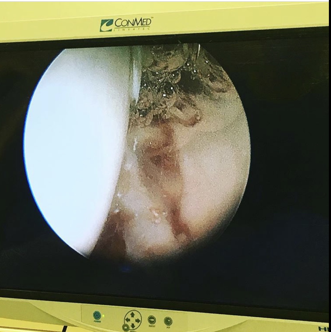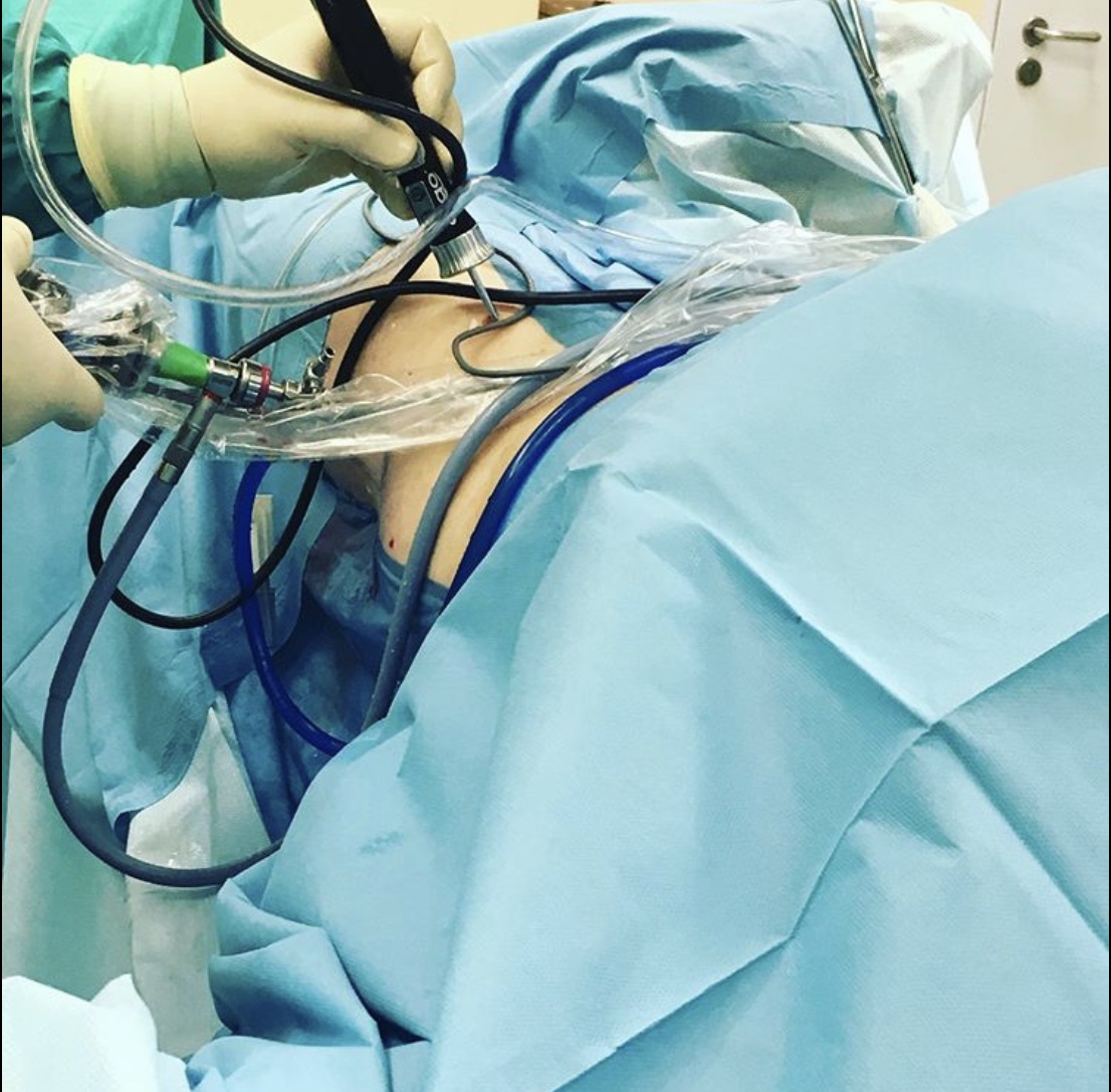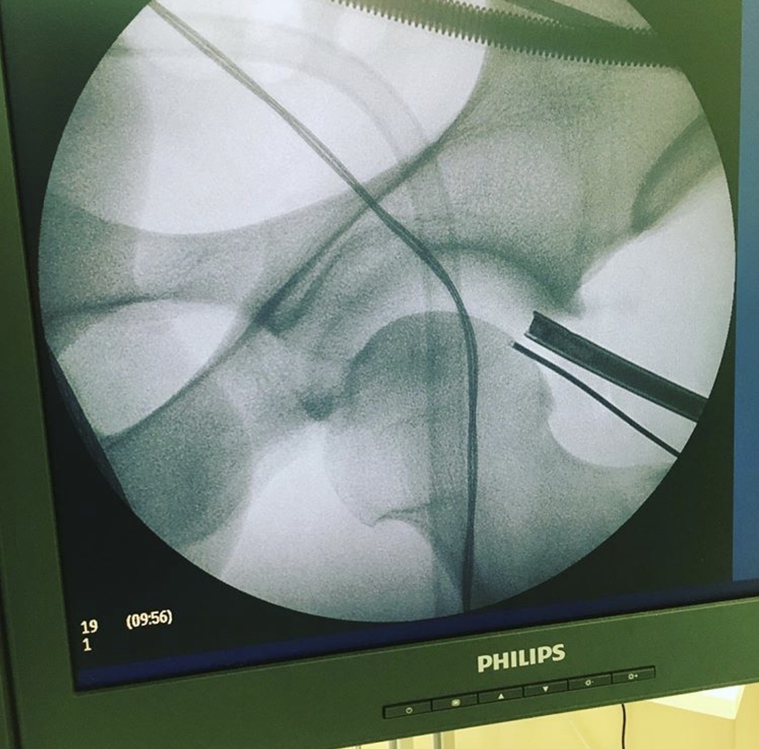 В ходе операции был проведён релиз суставной губы, резекция остеофитов, шов губы левого тазобедренного сустава.