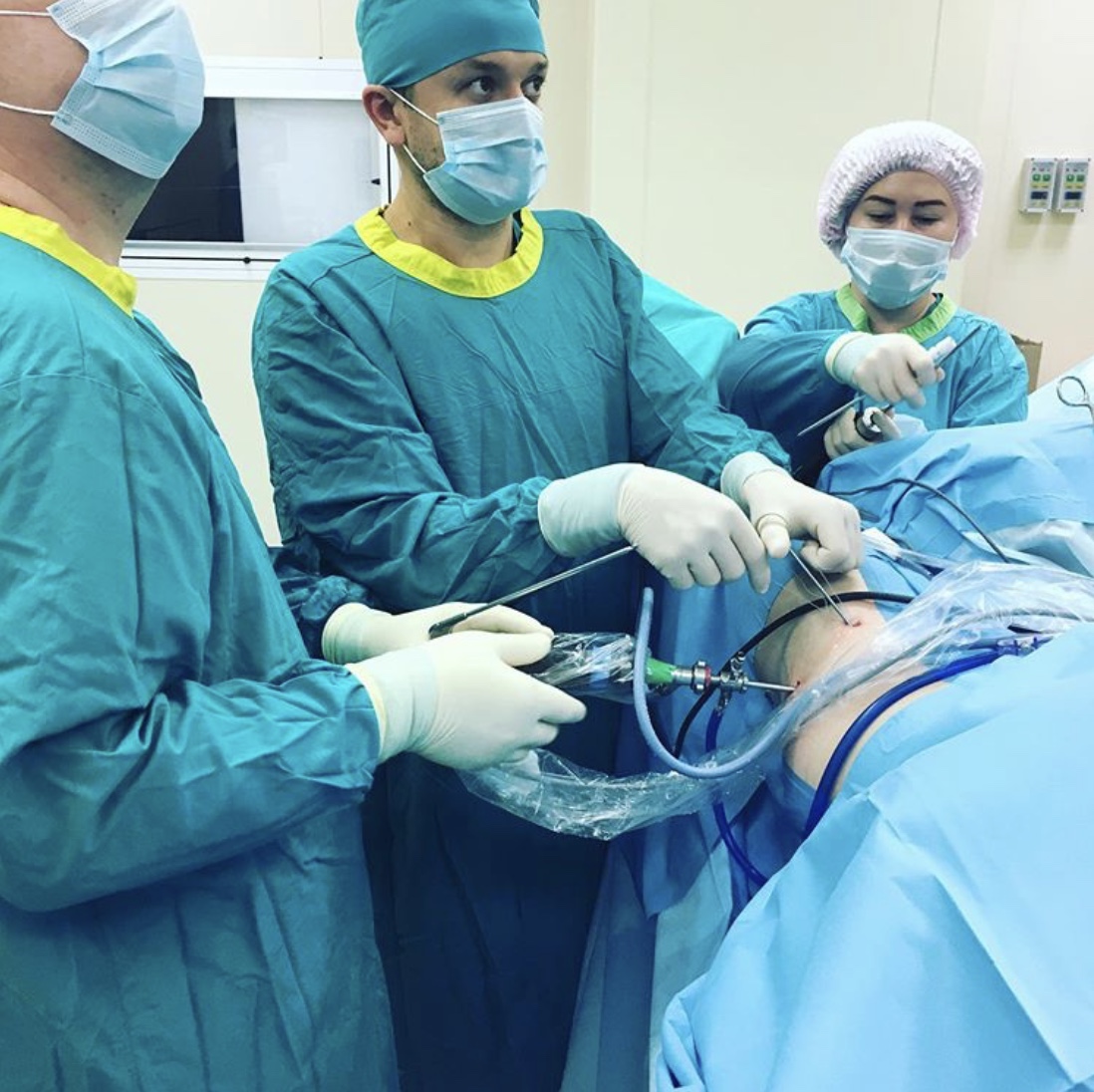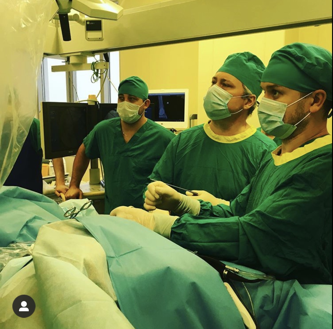 На операционном столе пациент. Он жаловался на боли в области левого тазобедренного сустава, врачи называют этот недуг синдромом паховой боли у спортсменов.