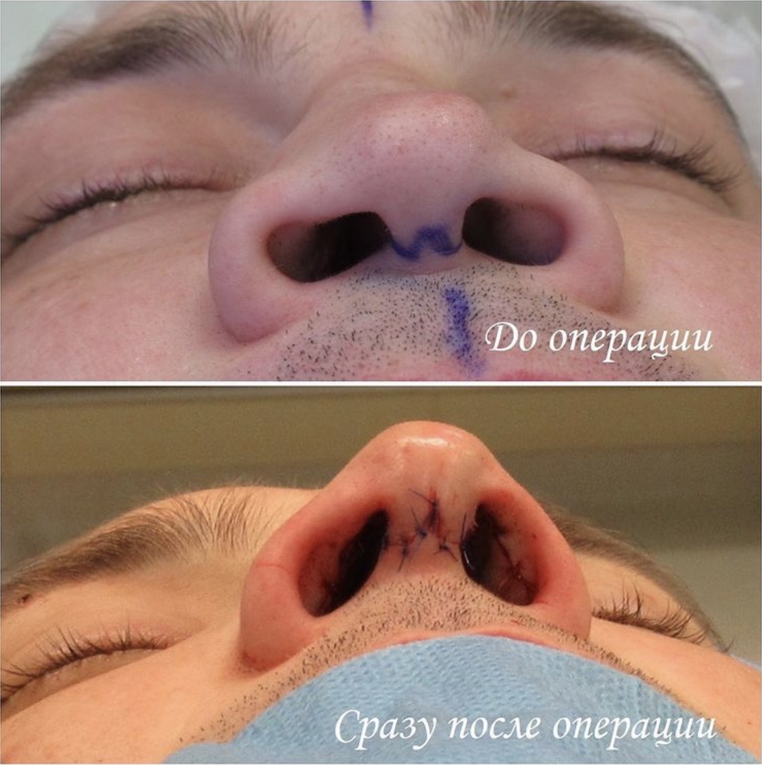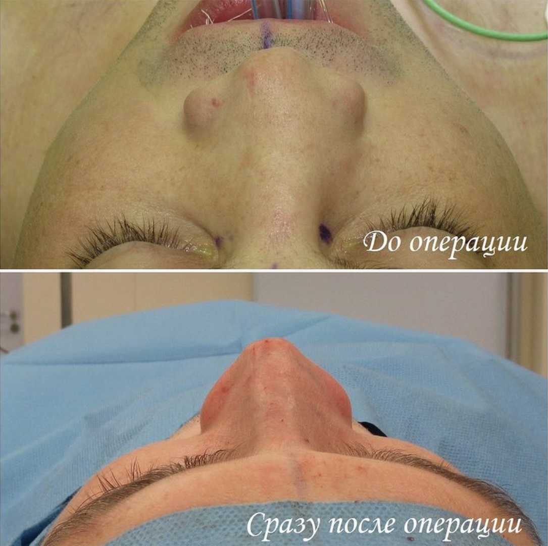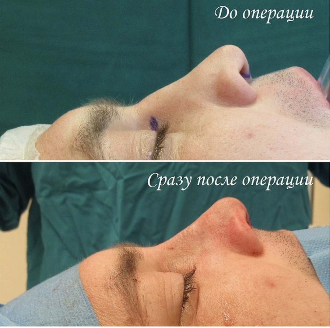 До операции у пациента была травма носа, после чего дважды проводилась ринопластика.