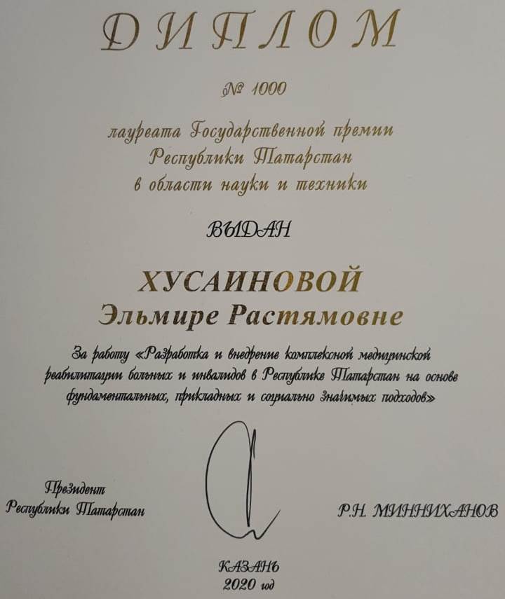 Среди награжденных за работу «Разработка и внедрение комплексной медицинской реабилитации больных и инвалидов в Республике Татарстан на основе фундаментальных, прикладных и социально-значимых подходов» врачи Городской клинической больницы № 7 Казани: