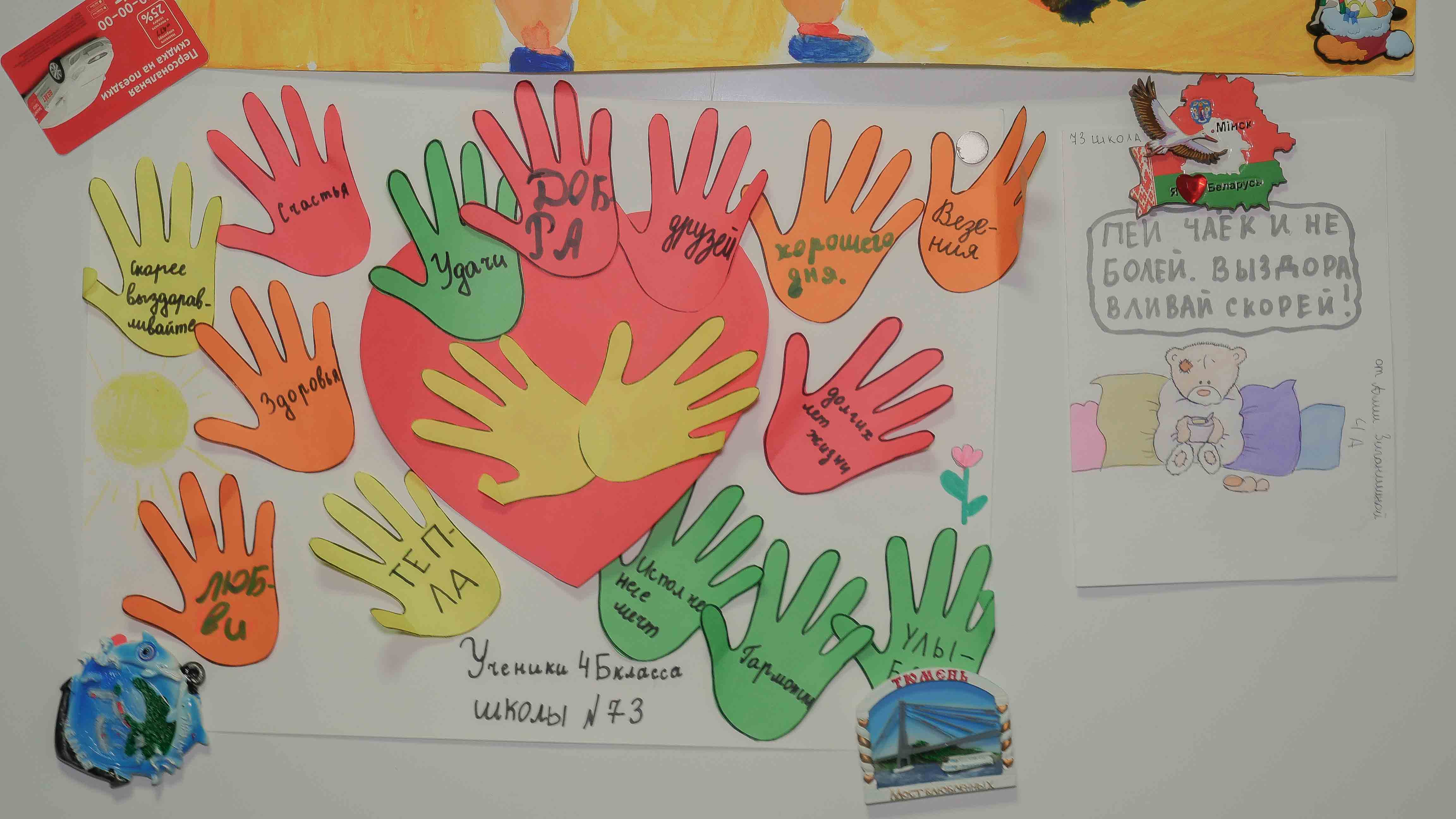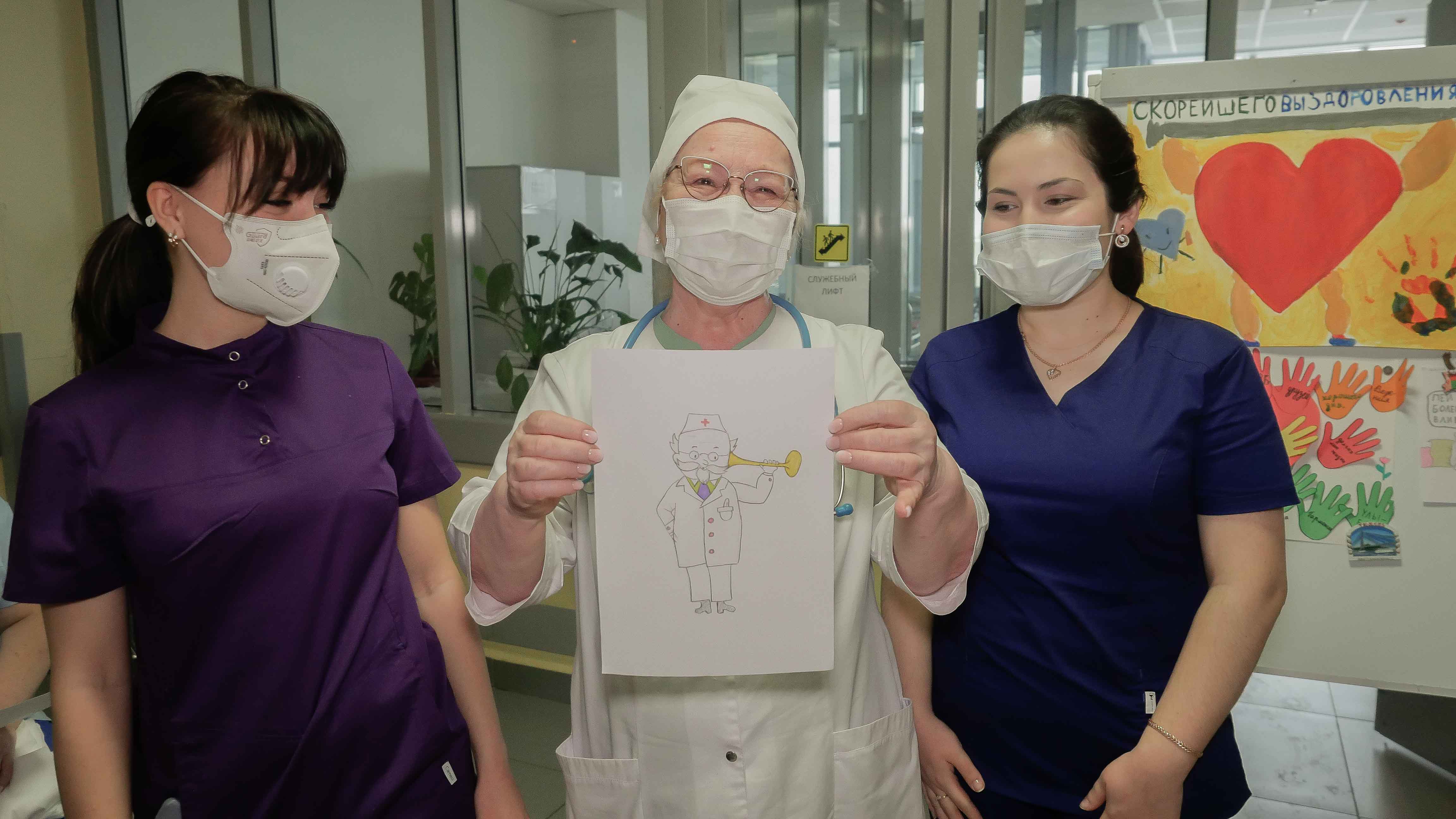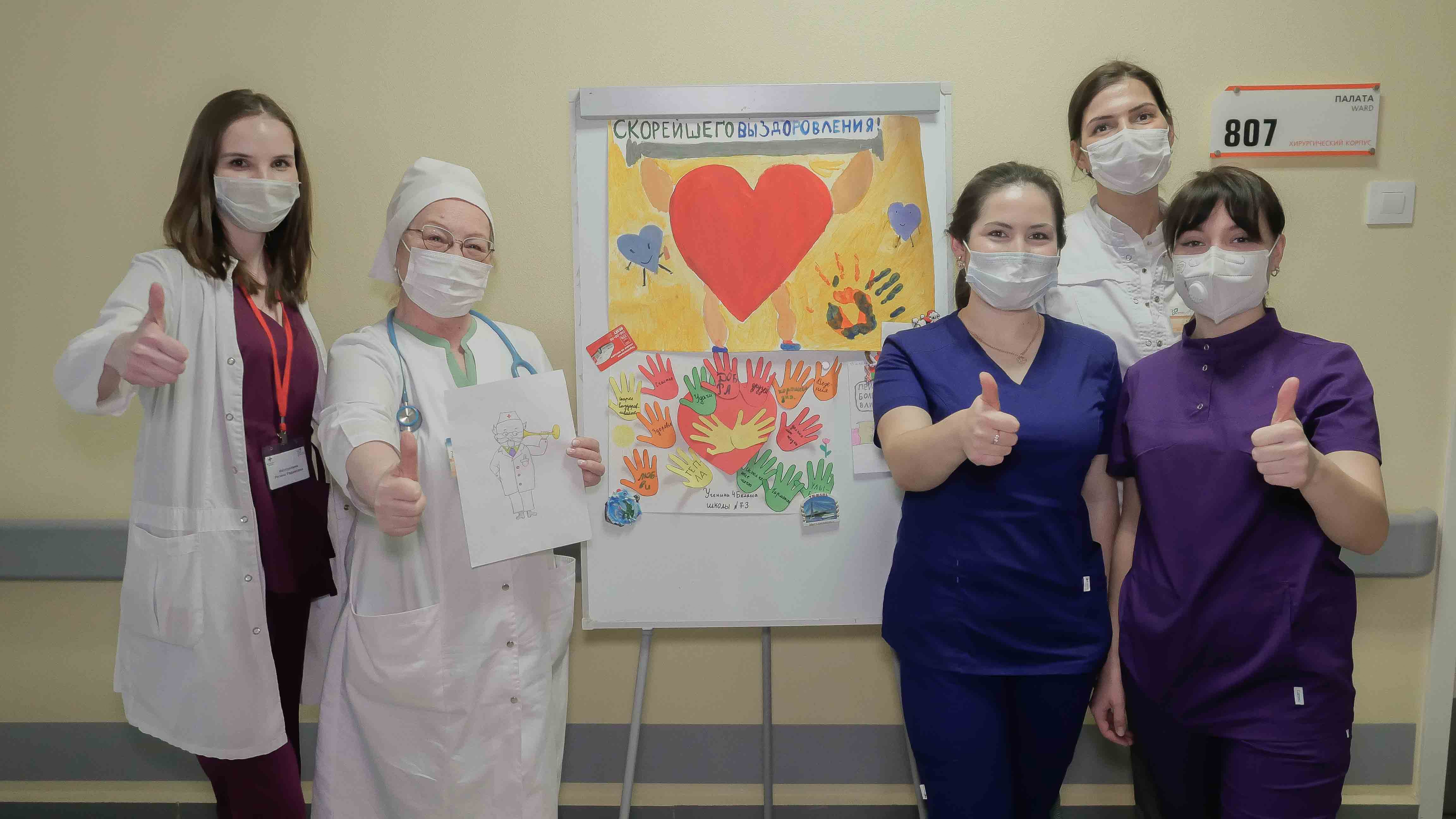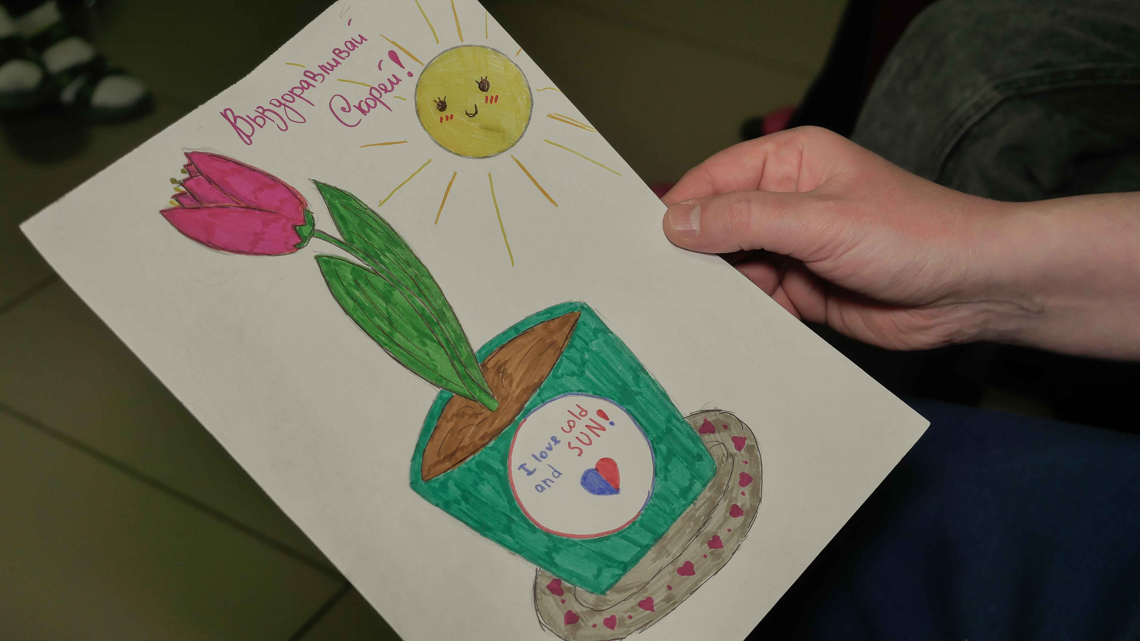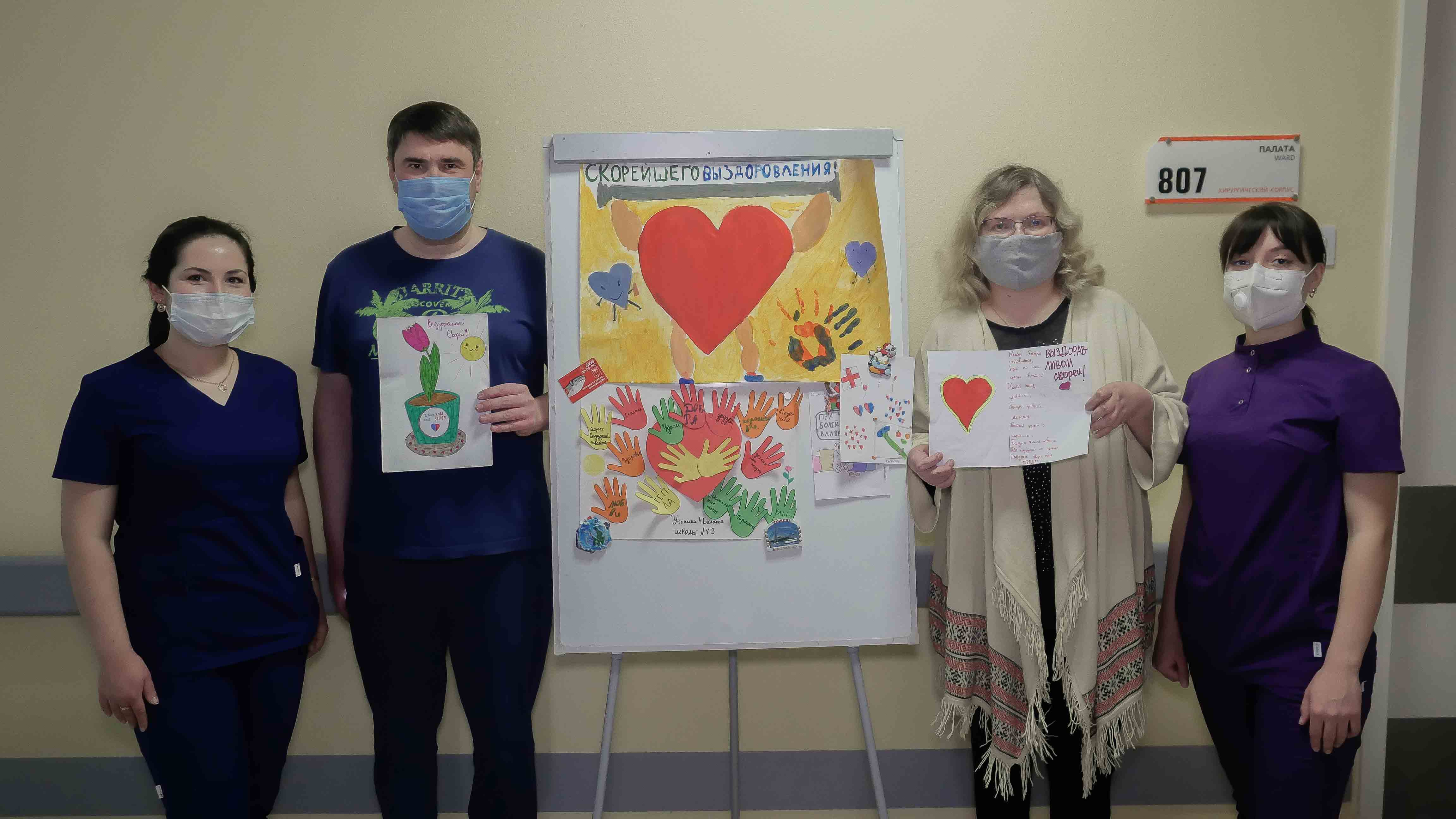 Ребята пожелали пациентам скорейшего выздоровления и подарили плакат, изготовленный школьниками Казани.