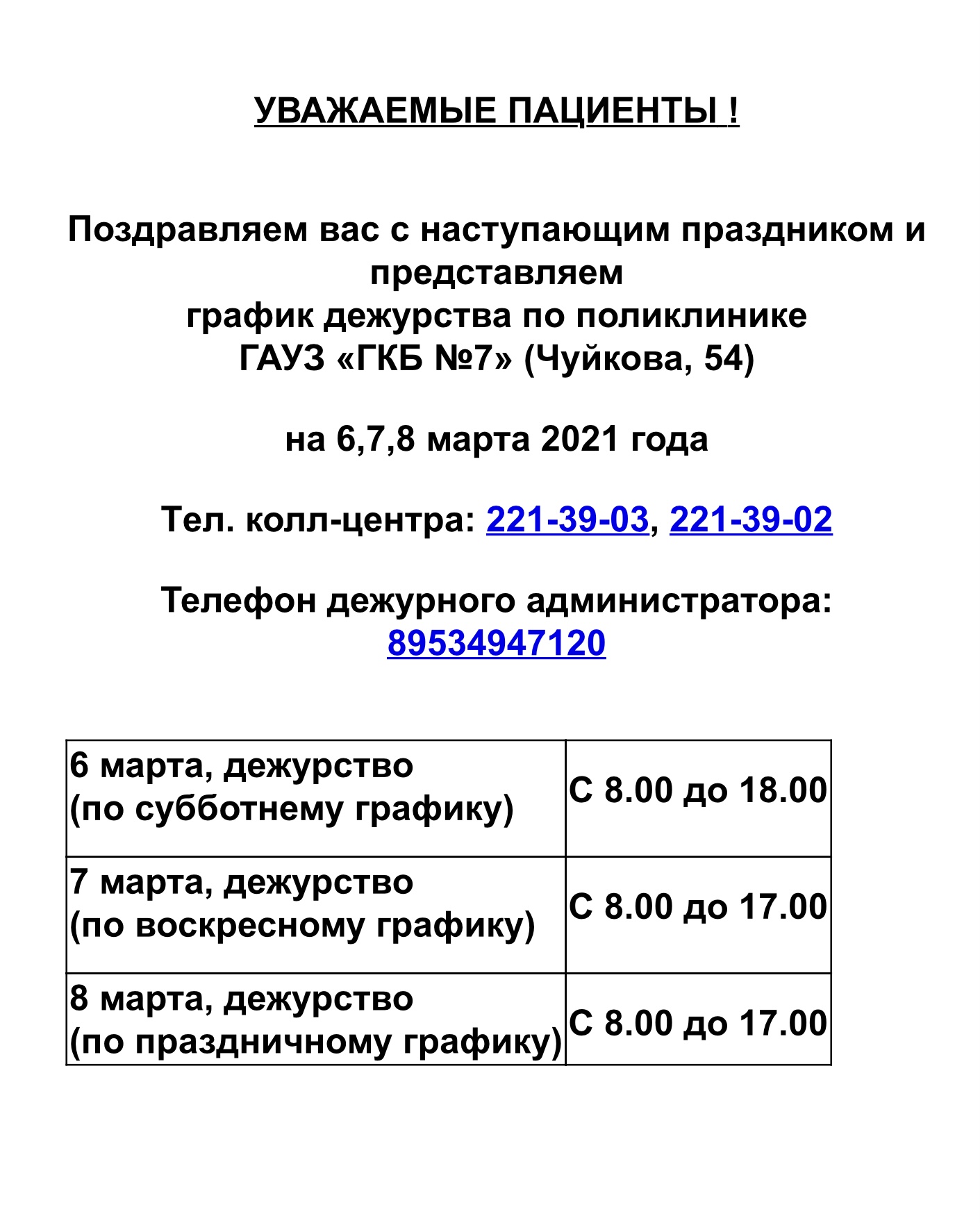 Поликлиника 6, 7, 8 марта работает!