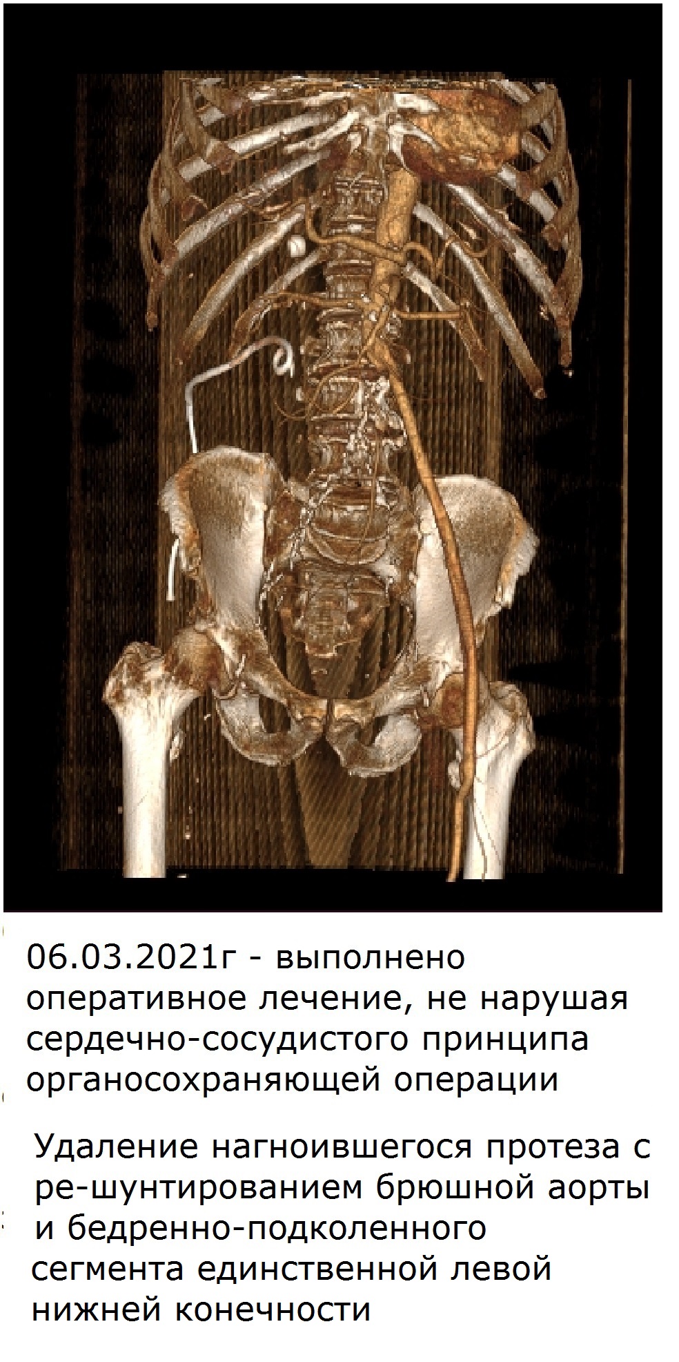 На операционном столе мужчина 74 лет. Еще в 2004 году ему было выполнено бифуркационное аорто-бедренное шунтирование. В анамнезе также ОНМК 1997 г, 2019 г., и Са мочевого пузыря с 2002 года. Спустя 16 лет, в июле 2020 года, на фоне вирусной пневмонии с 75% поражением легких, поставлен диагноз «острый тромбоз артерий правой нижней конечности», выполнена ампутация правой нижней конечности на уровне с\3 бедра.