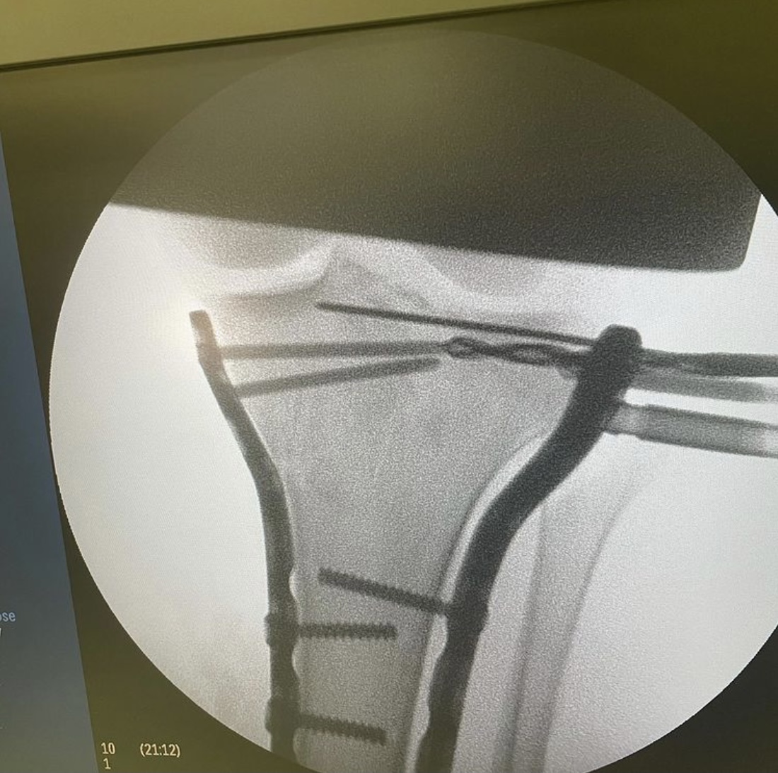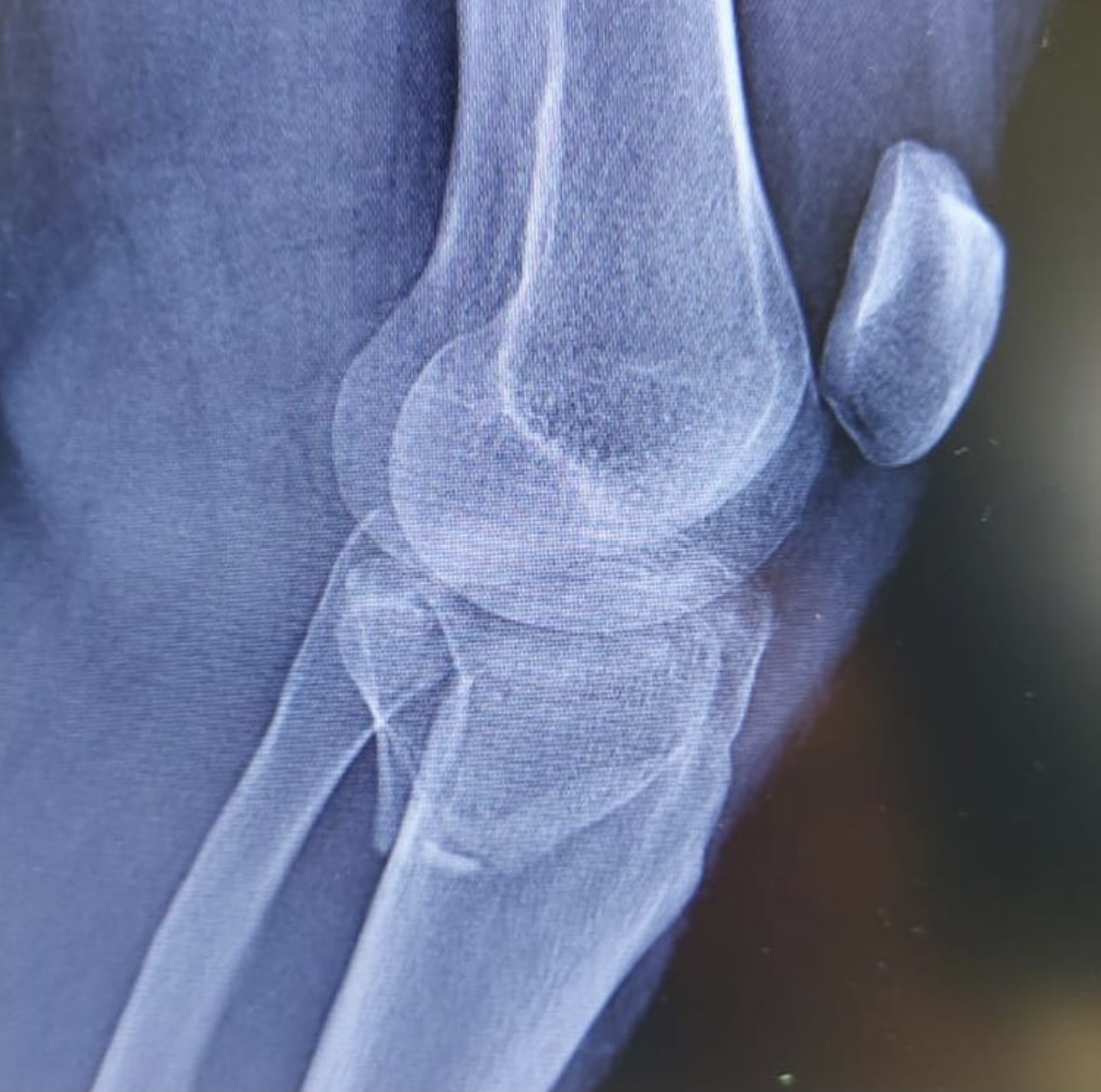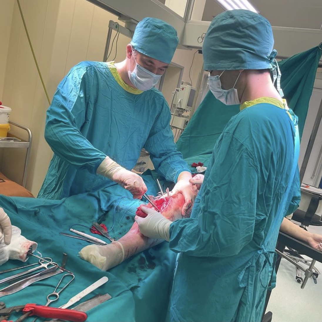 На операционном столе пациент с травмой в результате падения с самоката — многооскольчатый перелом верхнего суставного конца большеберцовой кости с разрывом боковых связок.