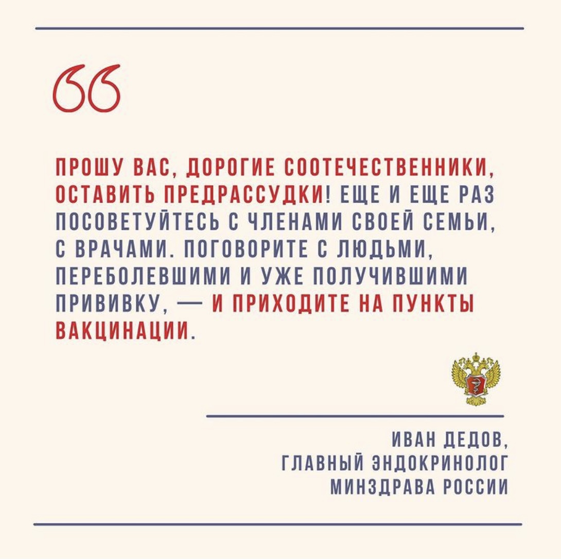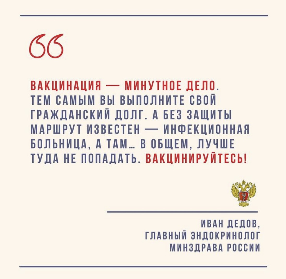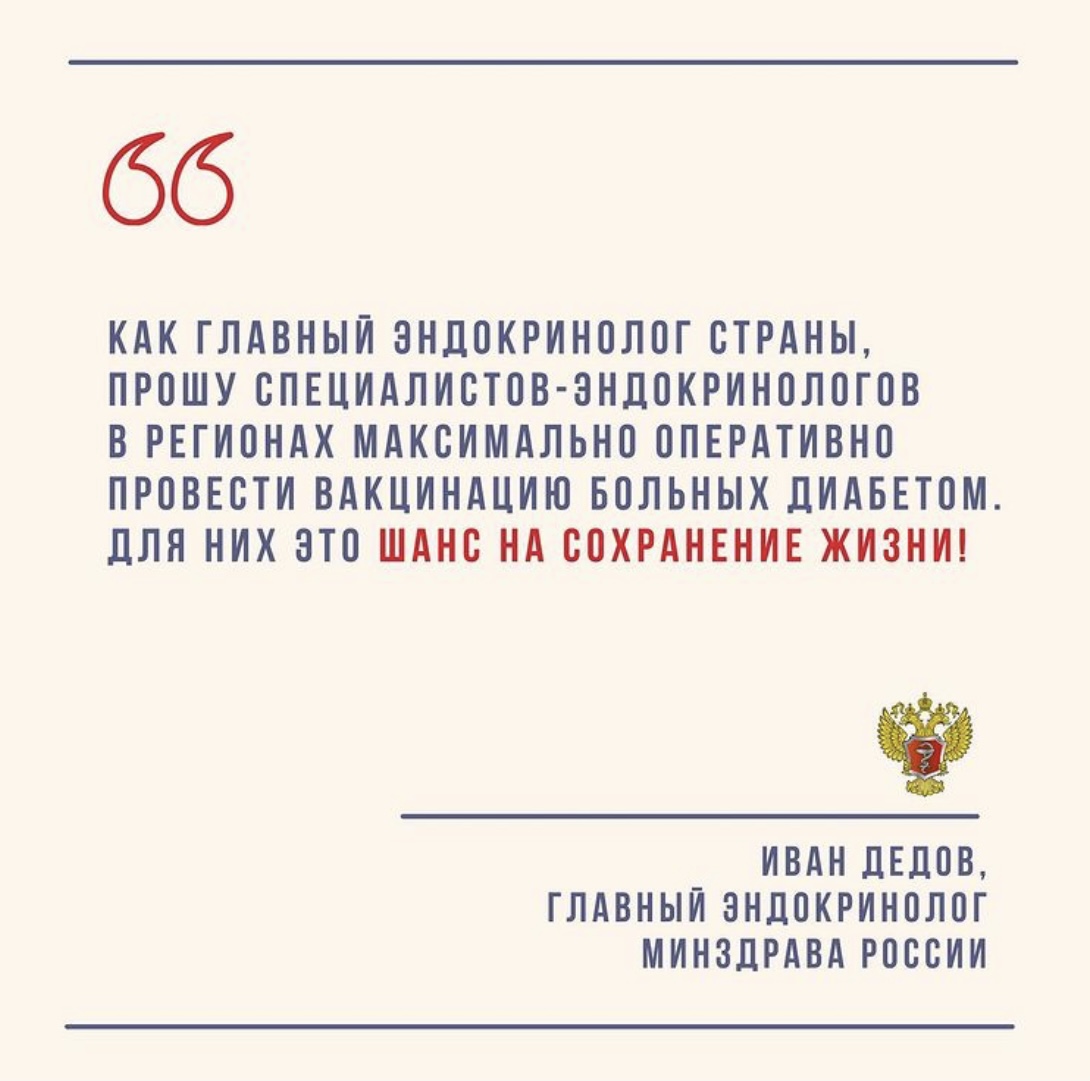 Главный эндокринолог Минздрава РФ: "Вакцинация - это шанс на сохранение жизни!"