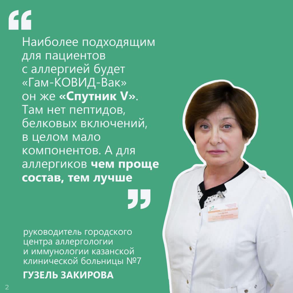 Вероятность того, что прививка от коронавируса вызовет аллергическую реакцию, мала. Об этом рассказала руководитель городского центра аллергологии и иммунологии казанской клинической больницы № 7 Гузель Закирова.