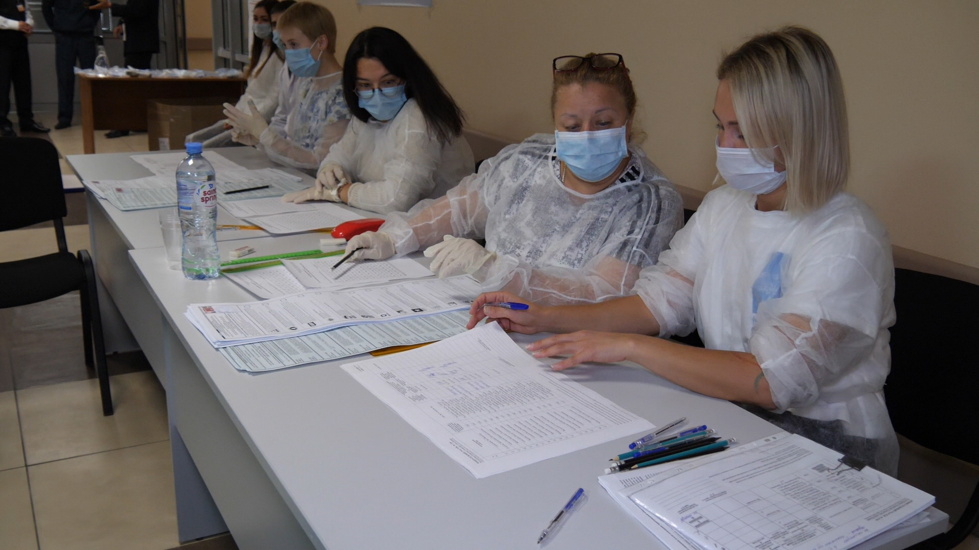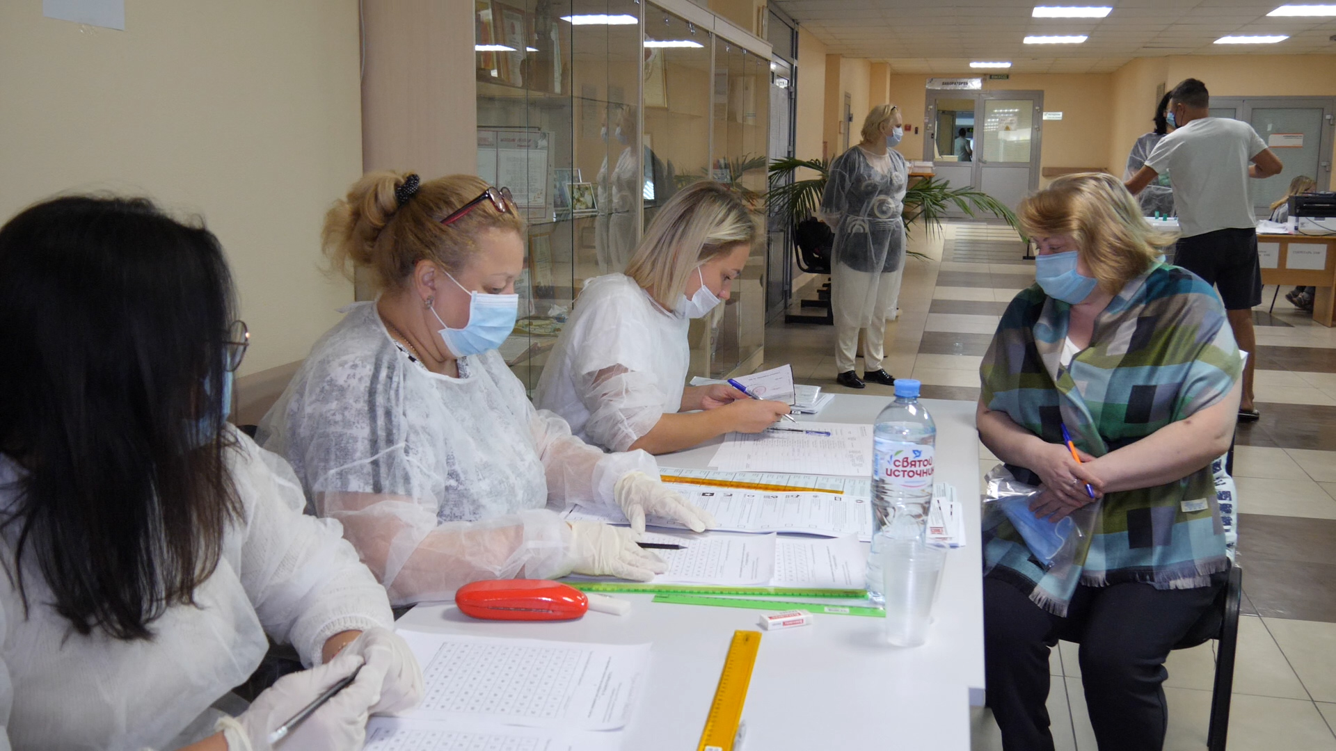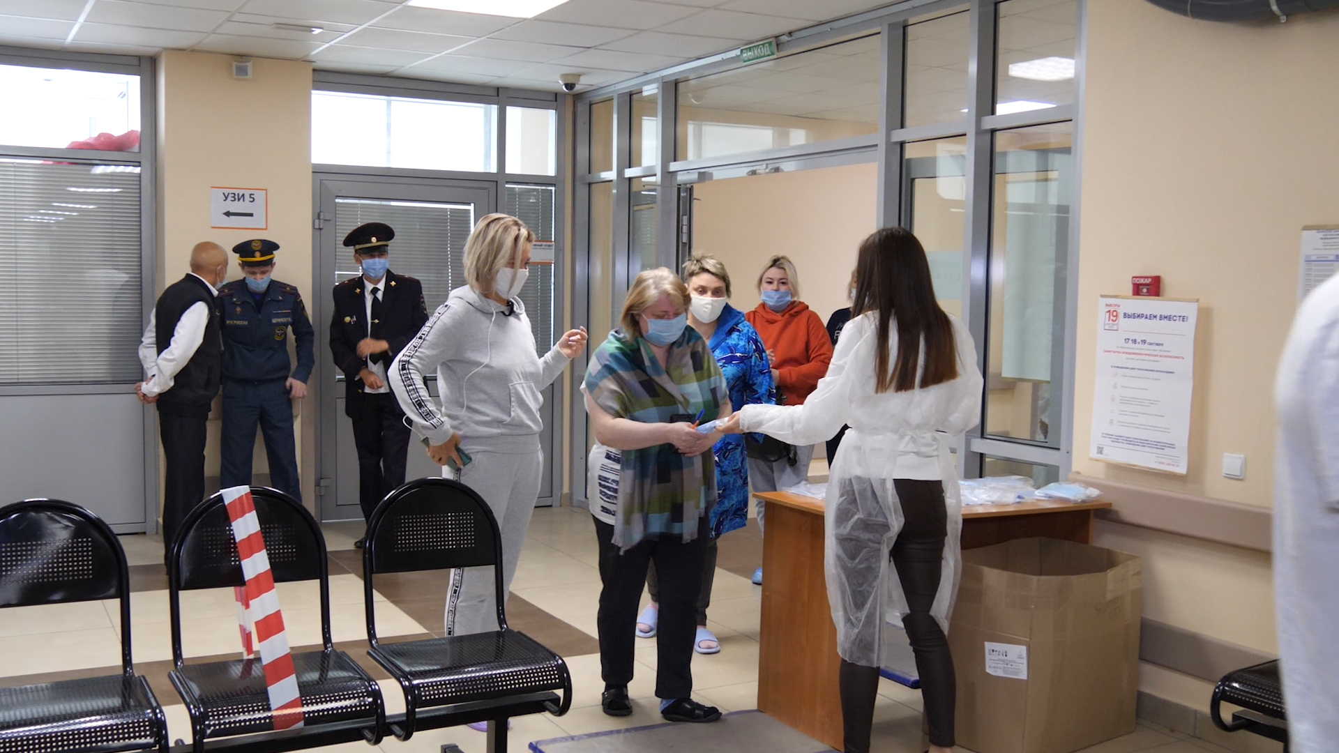 На участке всё в порядке, нарушений нет — обеспечена поточность избирателей, соблюдены санитарные нормы, выдаются маски, перчатки, индивидуальные ручки. Ведётся видеонаблюдение.